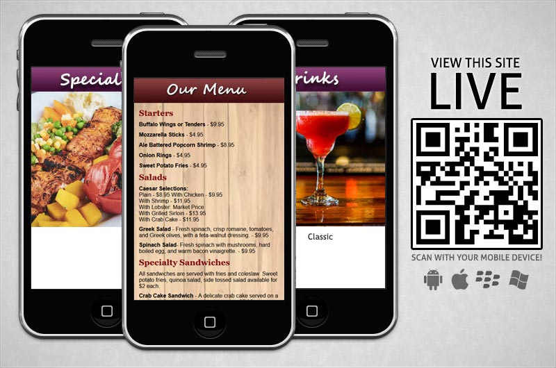 • Link to meus on your own website, or build one using our mobile page-builder (Scan code above for an example)